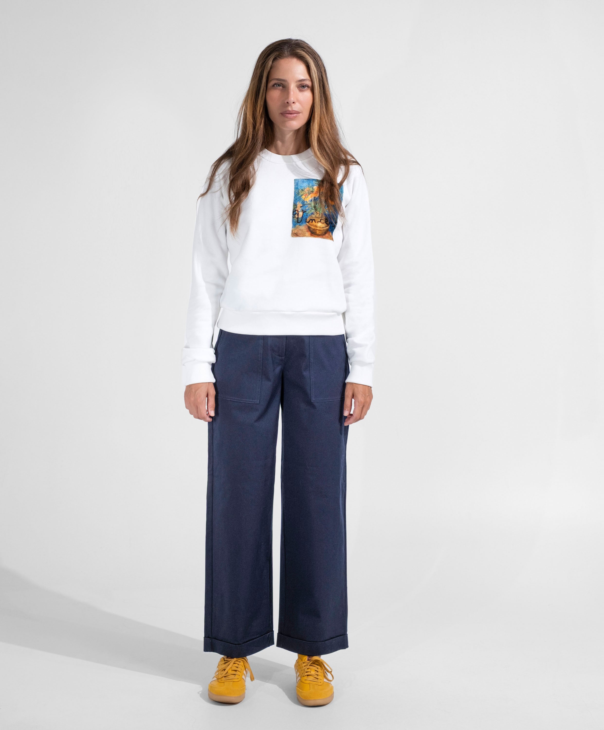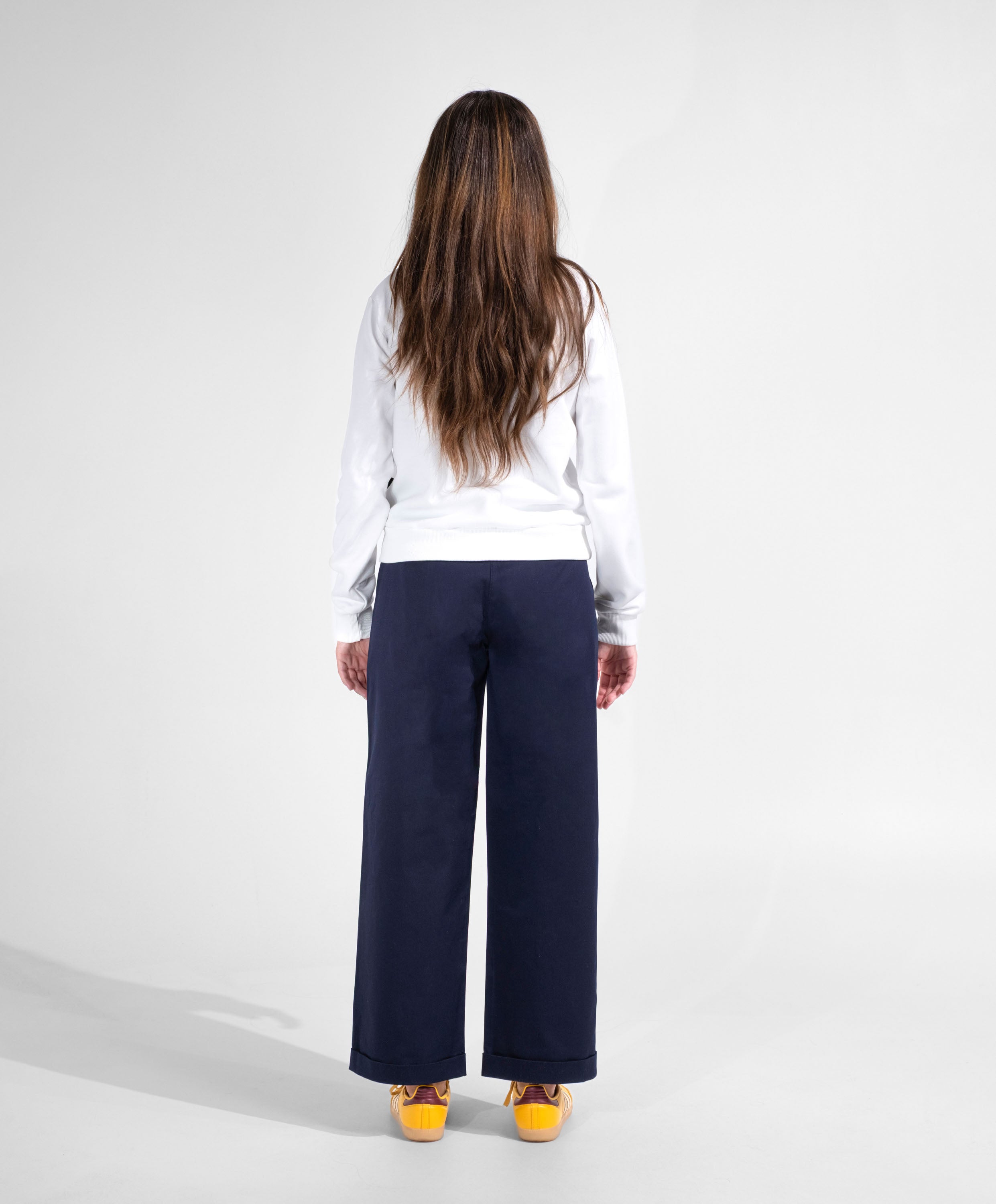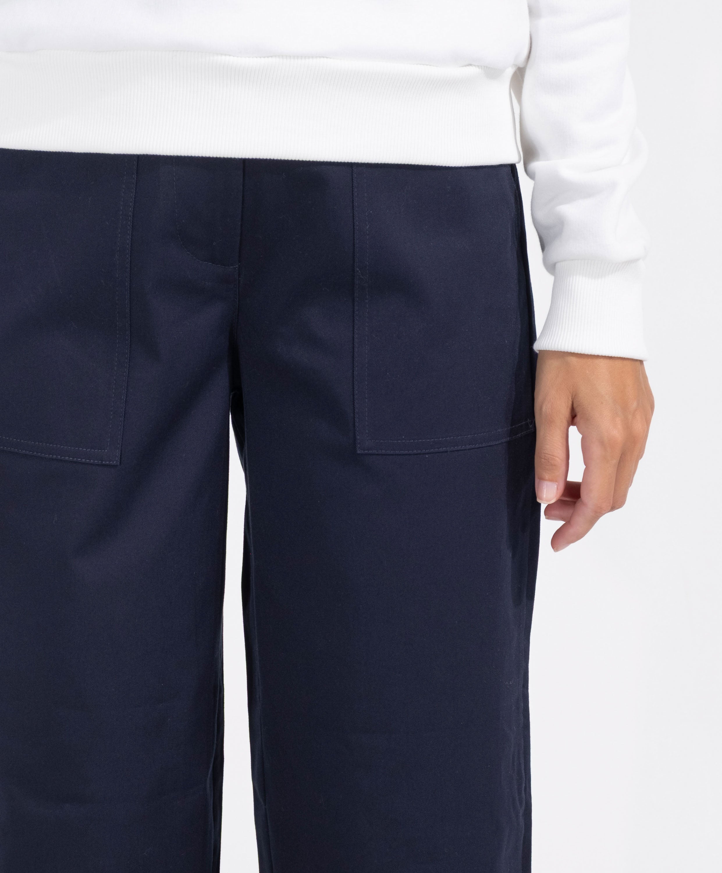 Pantalone donna con tasche, vestibilità regolare, 97% cotone 3% elastan.