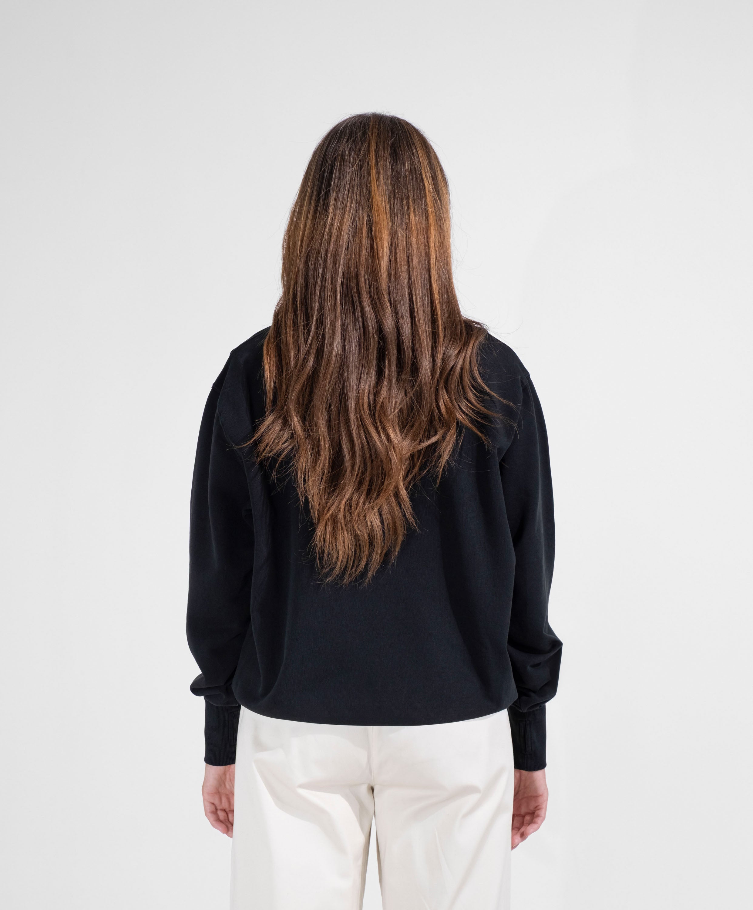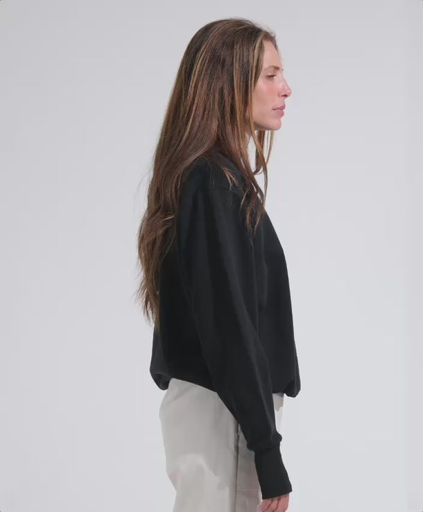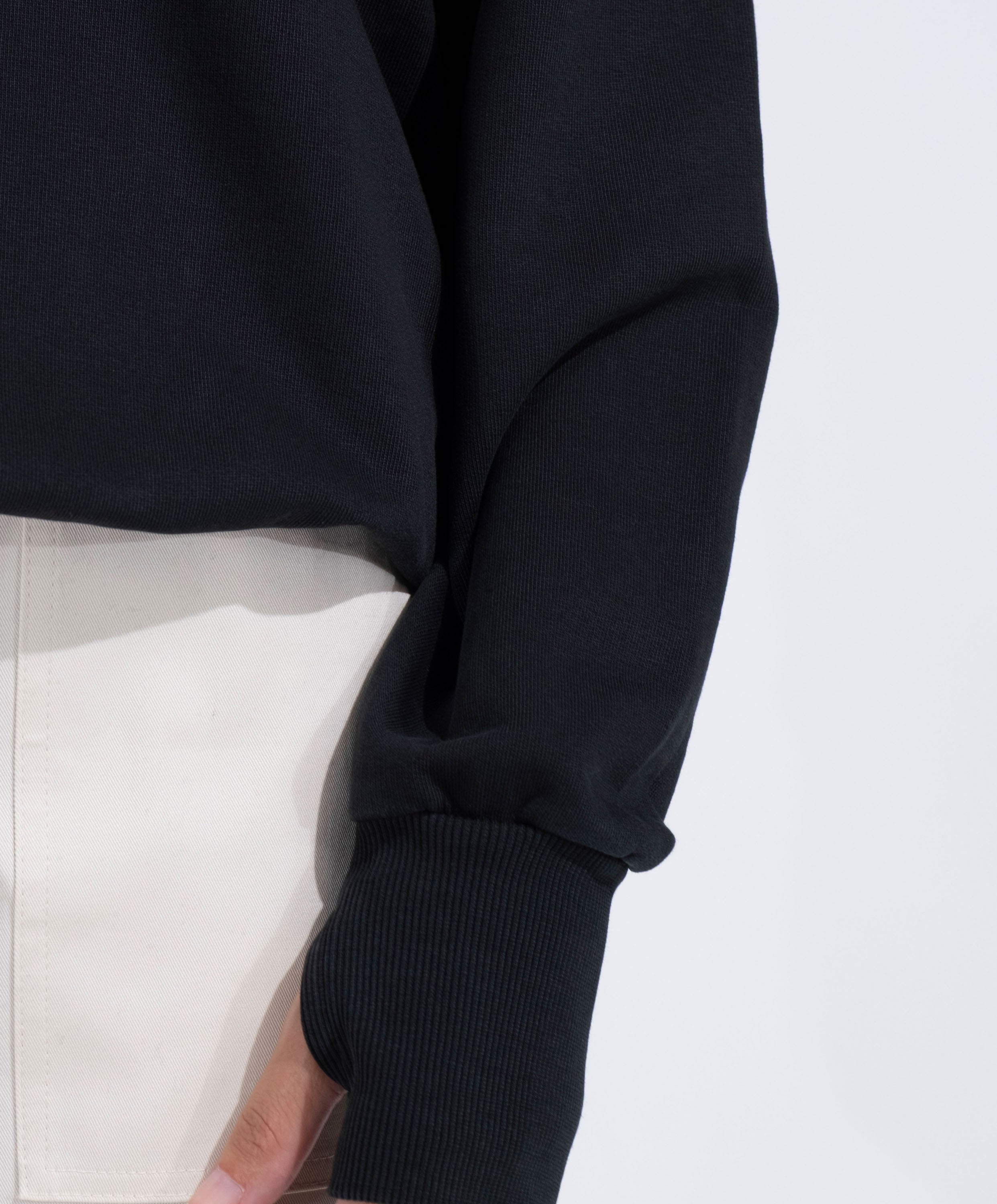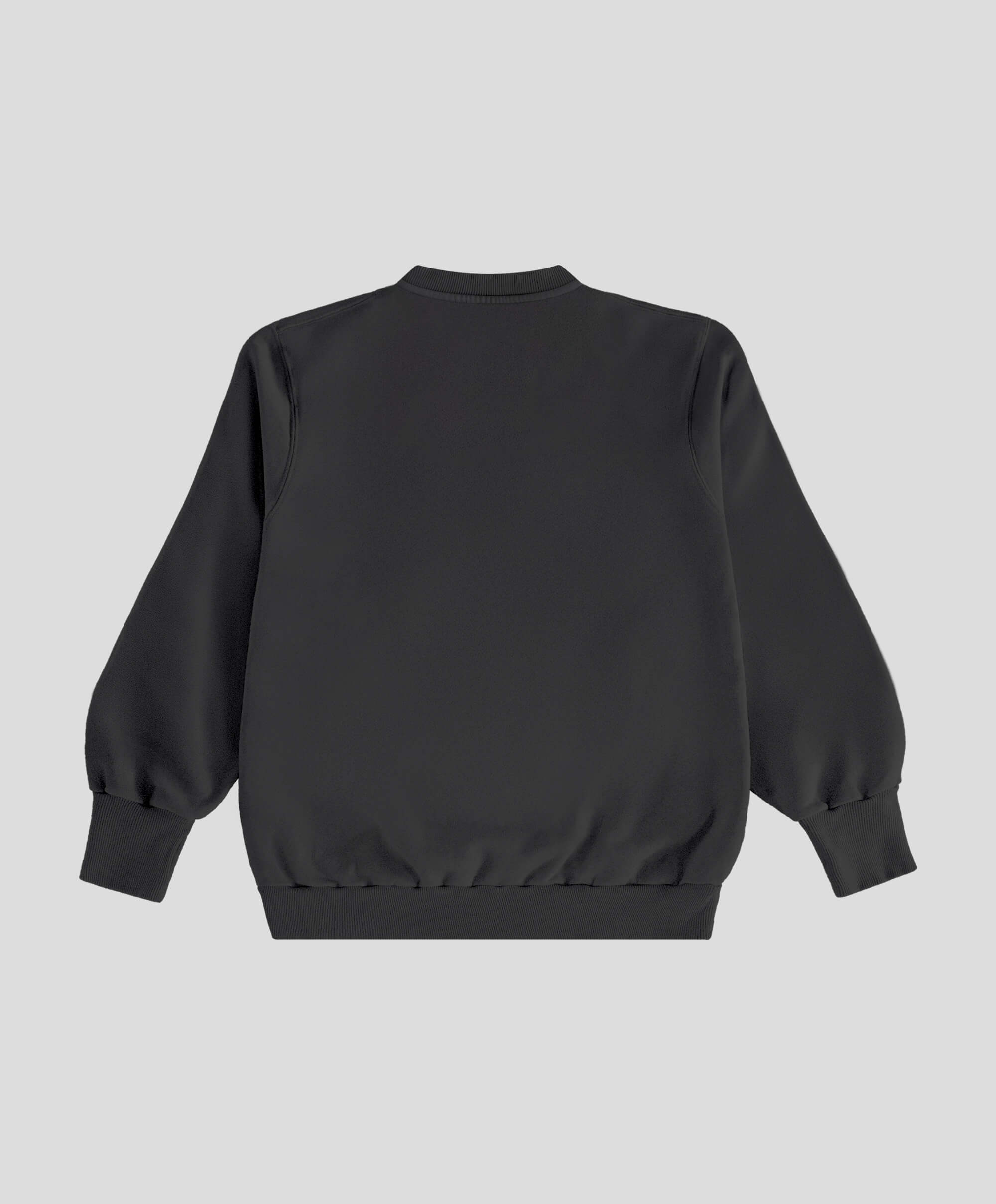Felpa girocollo, tinto in capo, vestibilità over, polsini dotati di passapollice, 100% cotone French Terry 300 grammi. Peso medio consigliata per tutte le stagioni.