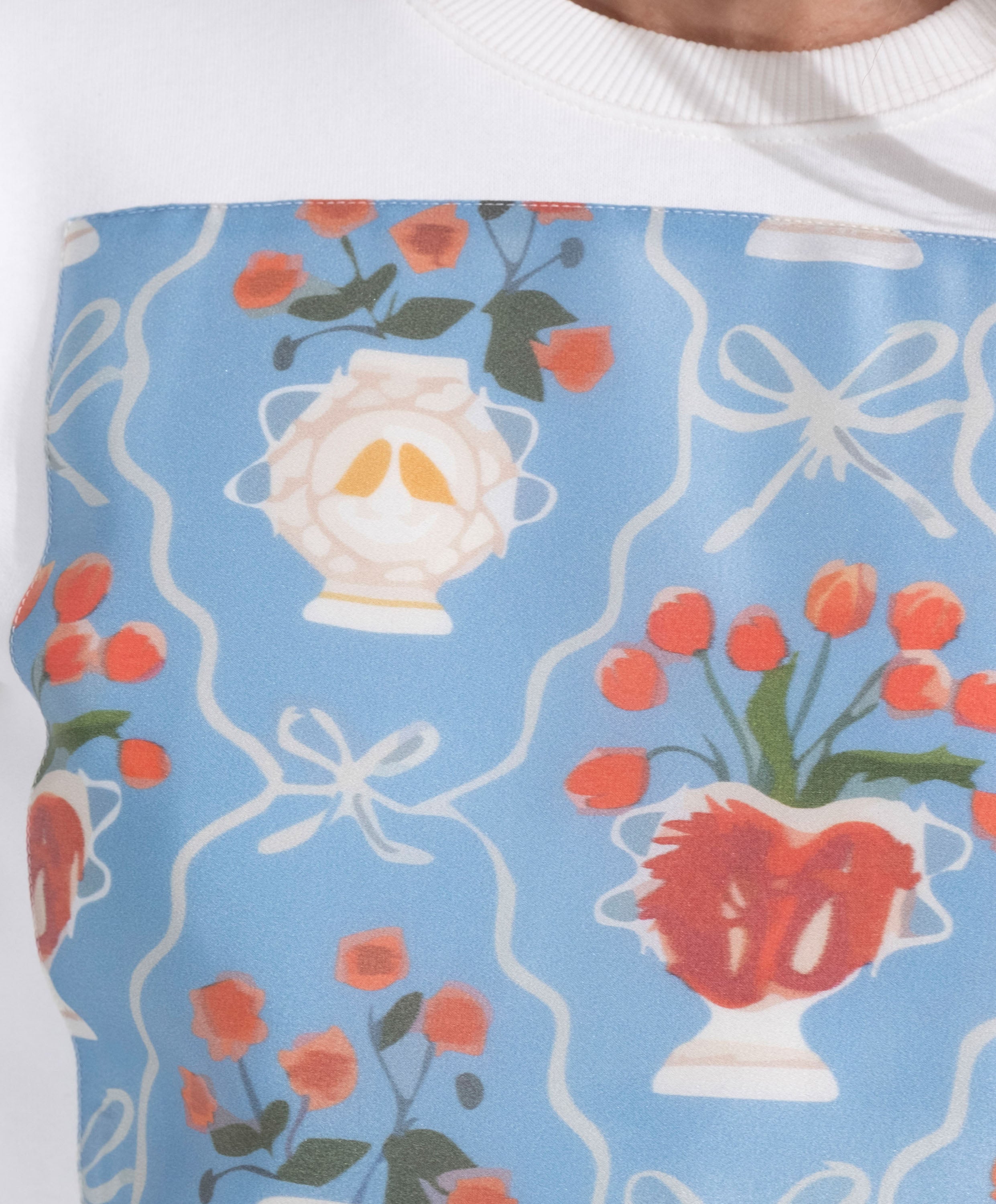 Stampa digitale a colori ad alta definizione su seta cucita sul davanti, leggera e traspirante, impercettibile sulla pelle e resistente ai lavaggi.