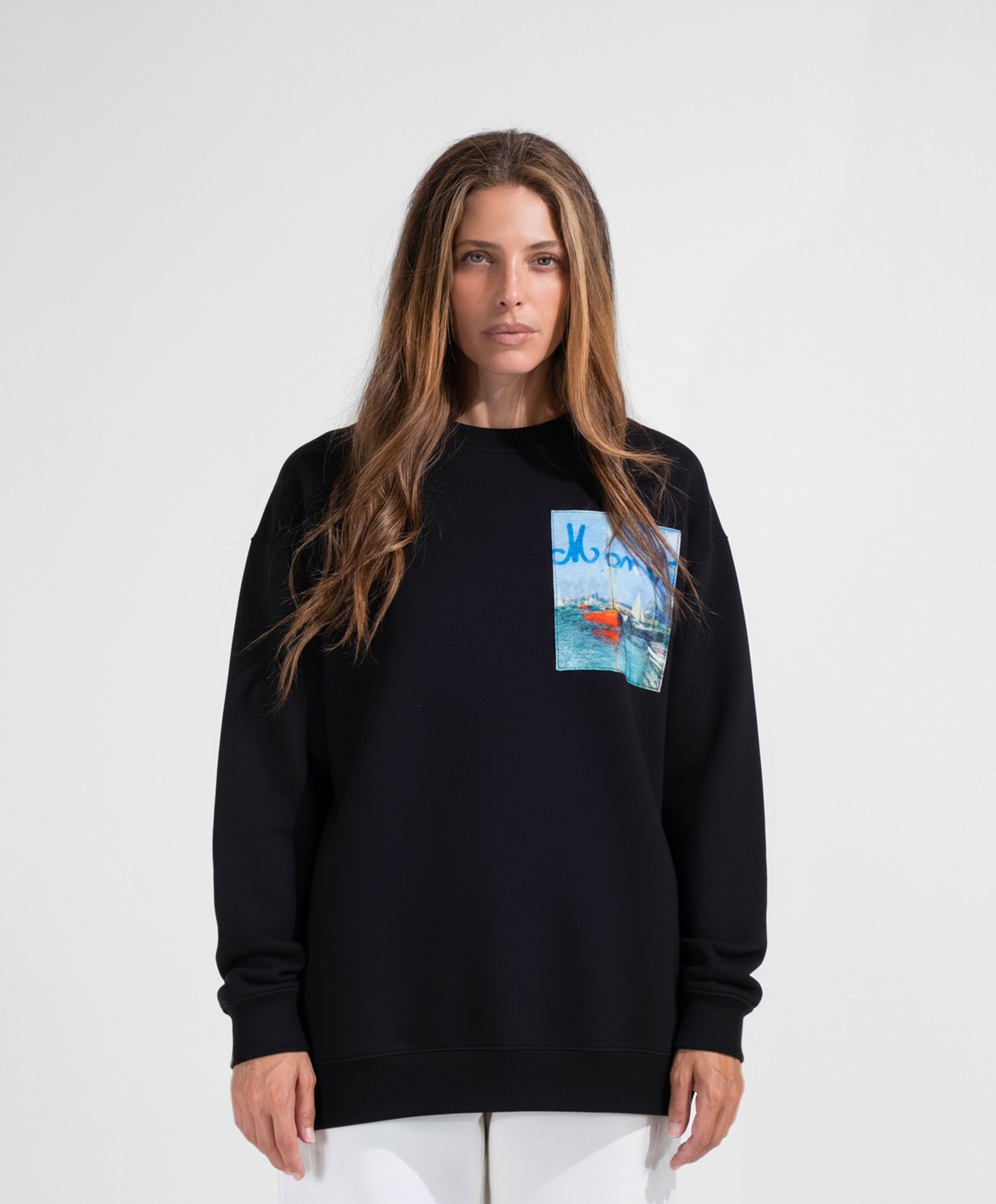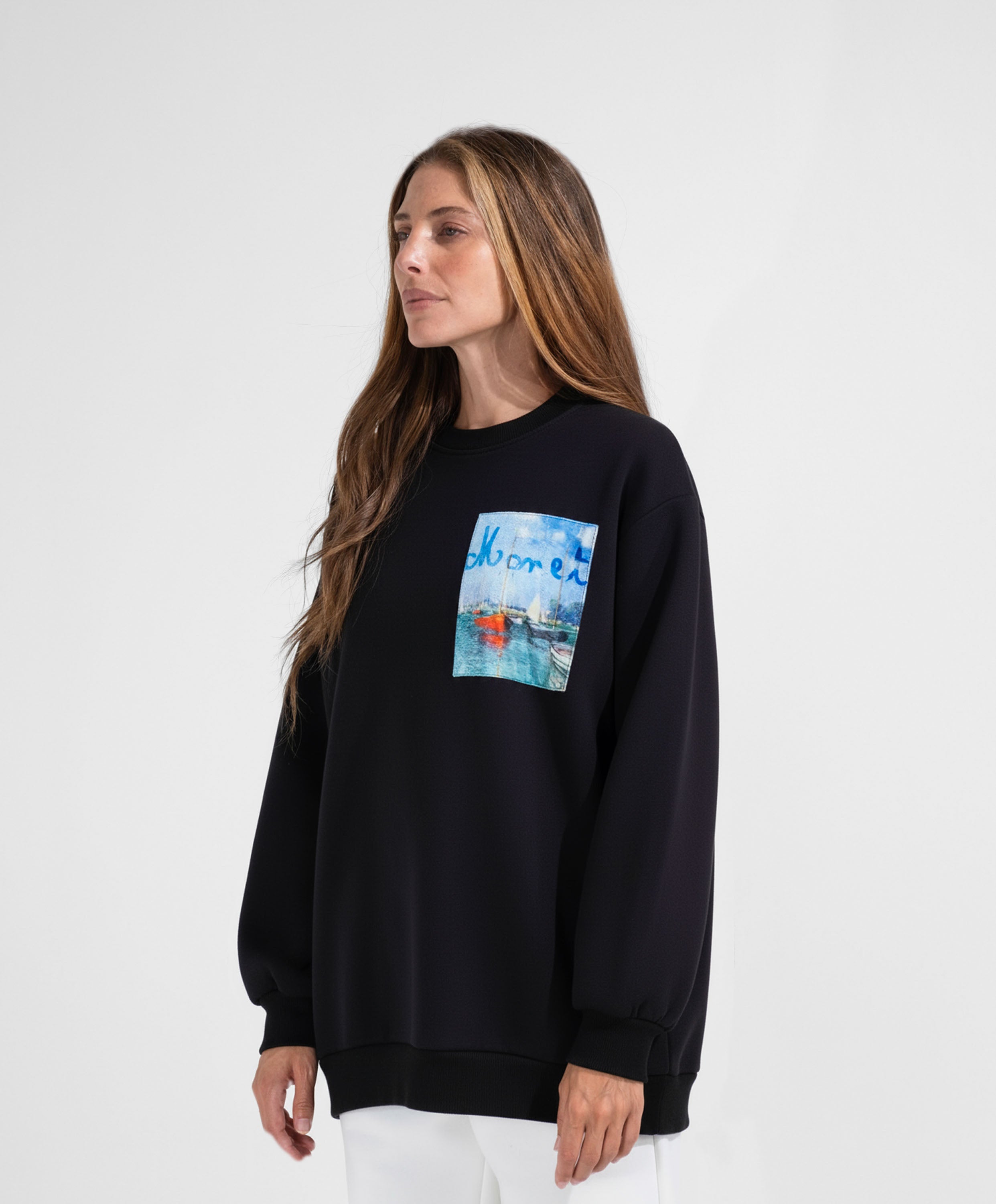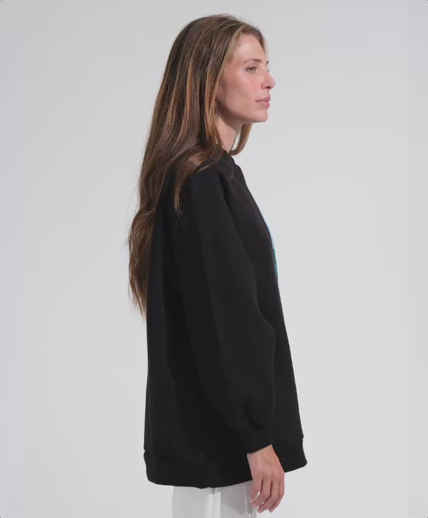 Felpa girocollo donna, vestibilità over, 90% cotone 10% poliestere 300gr, bandiera logo Ko Samui sul fianco.
