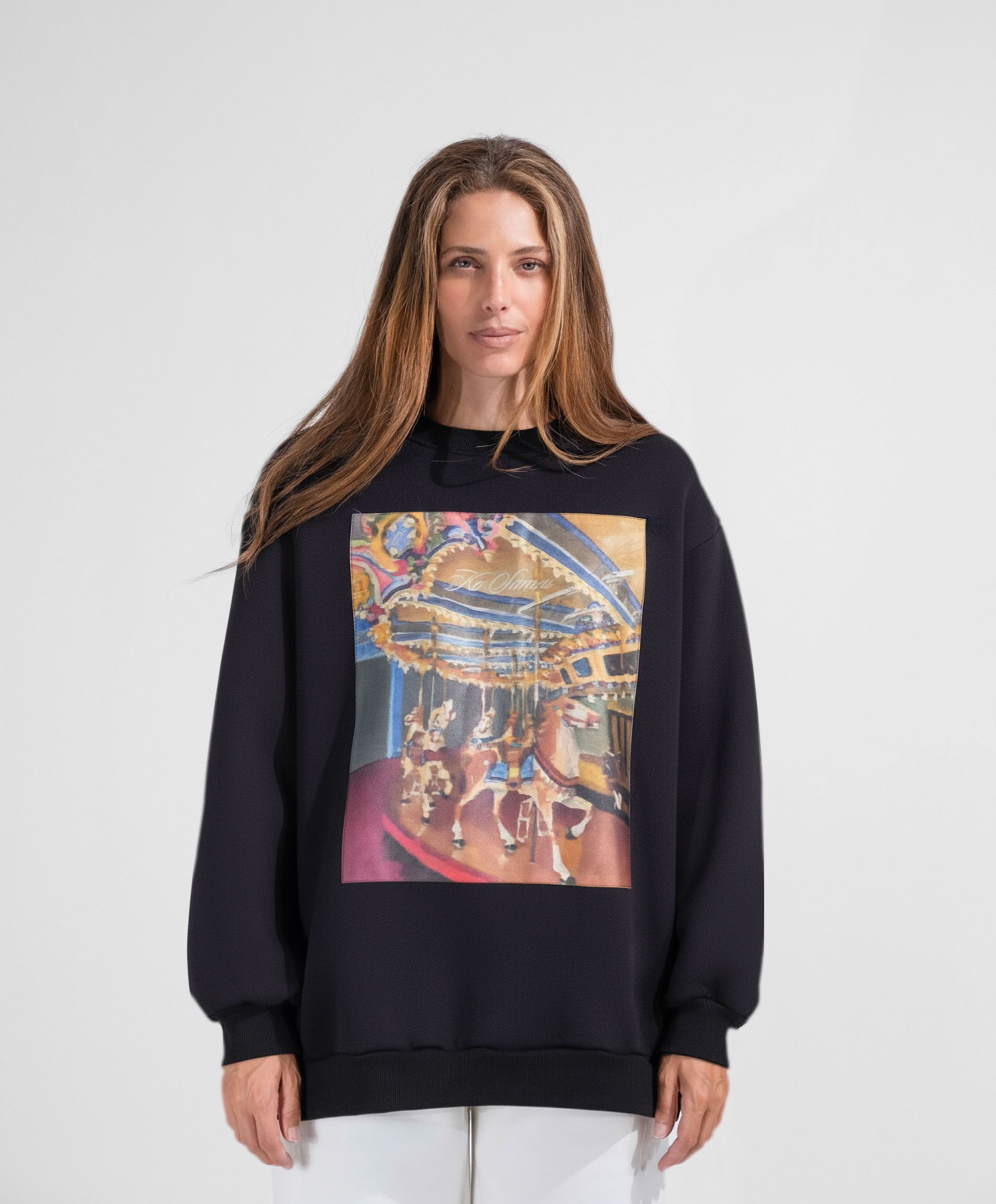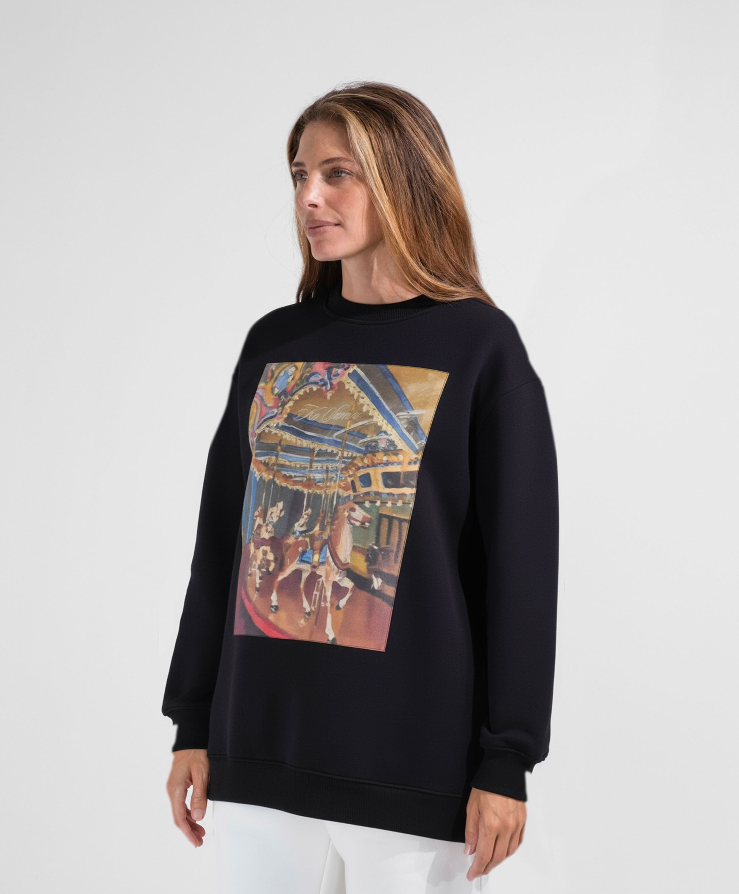 Felpa girocollo donna, vestibilità over, 90% cotone 10% poliestere 300gr, bandiera logo Ko Samui sul fianco.