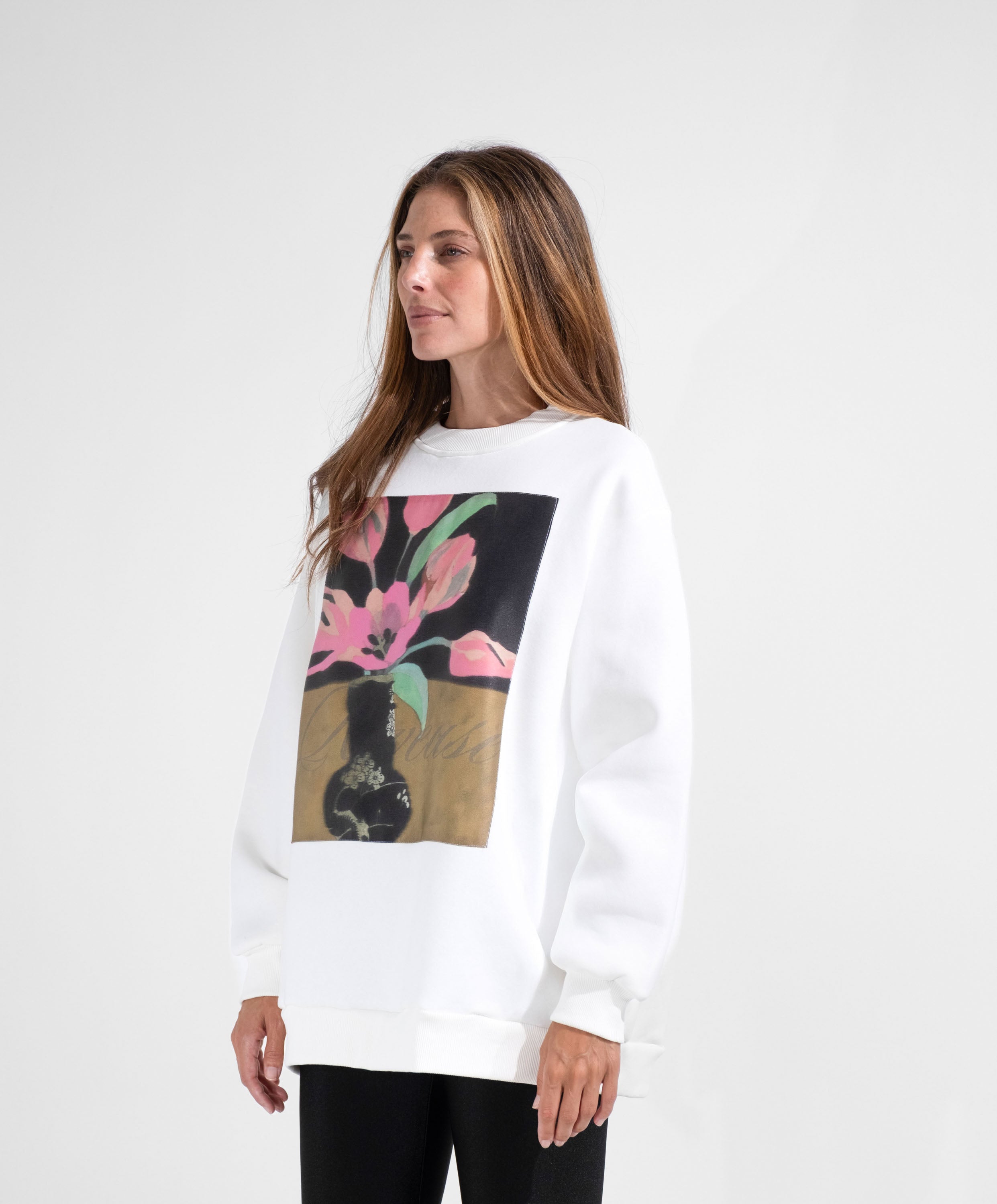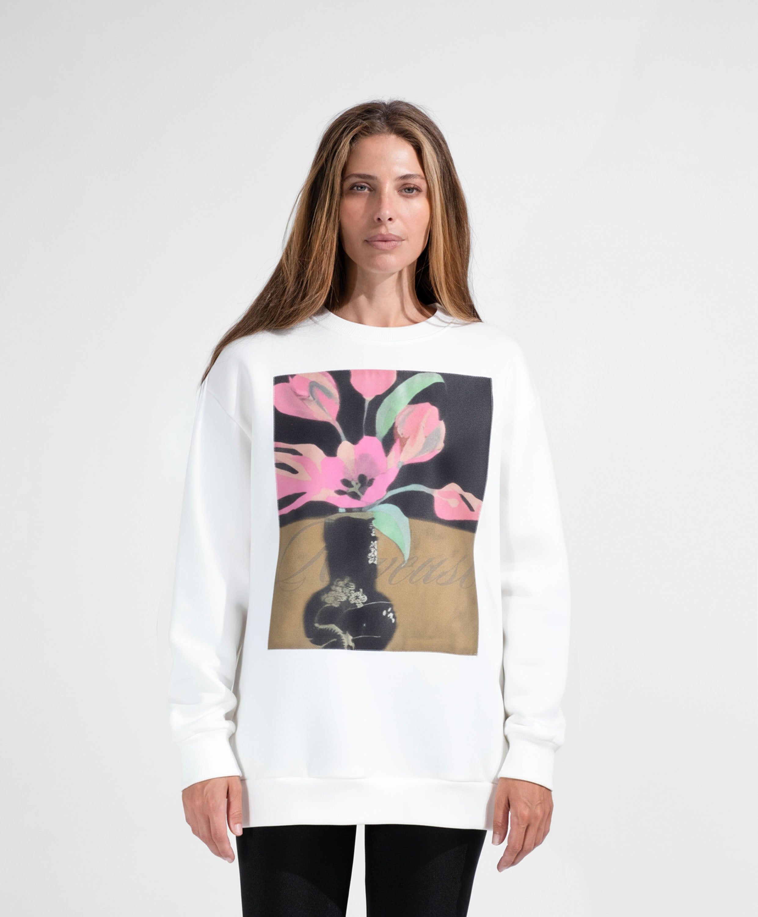 Felpa girocollo donna, vestibilità over, 90% cotone 10% poliestere 300gr, bandiera logo Ko Samui sul fianco.