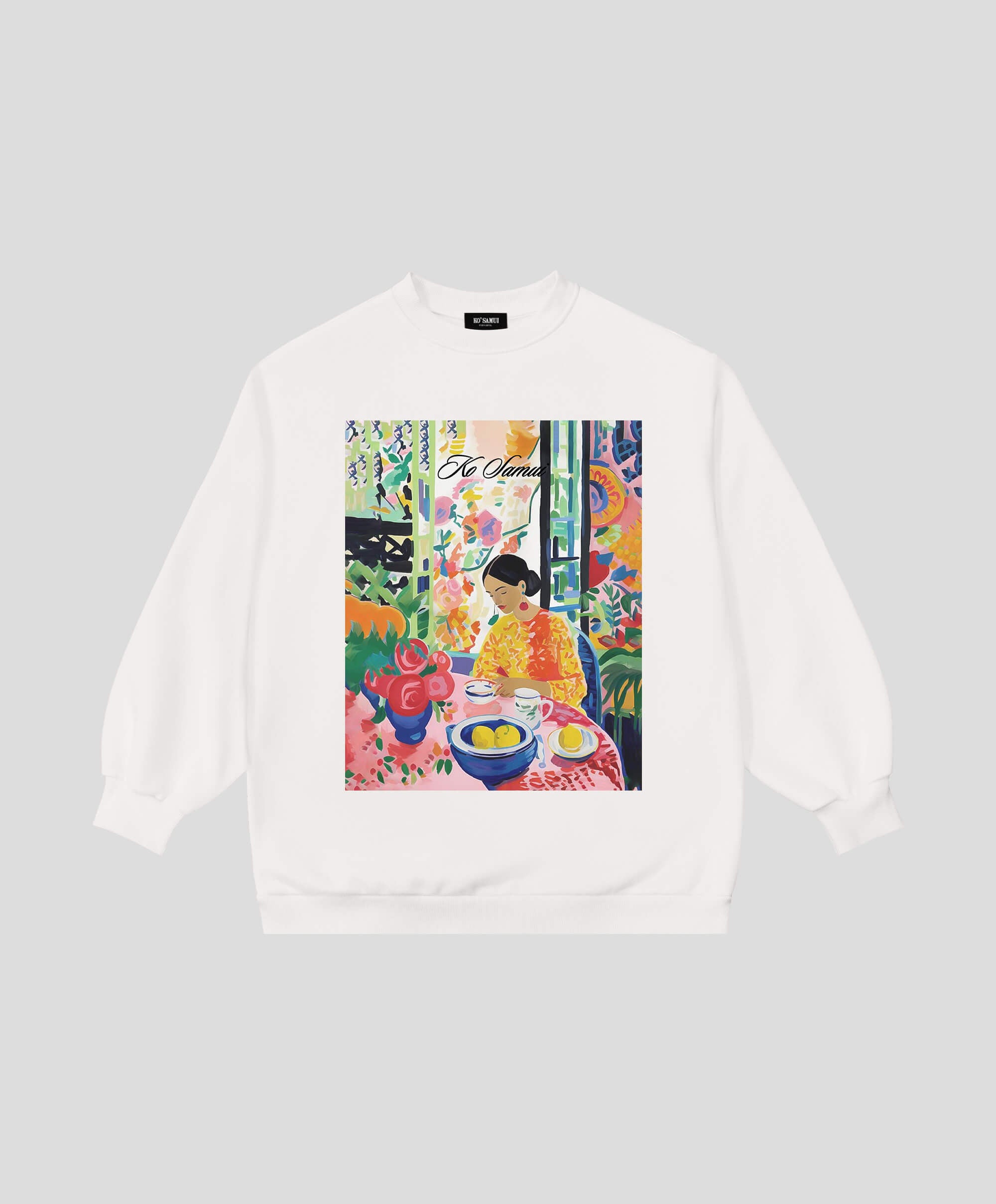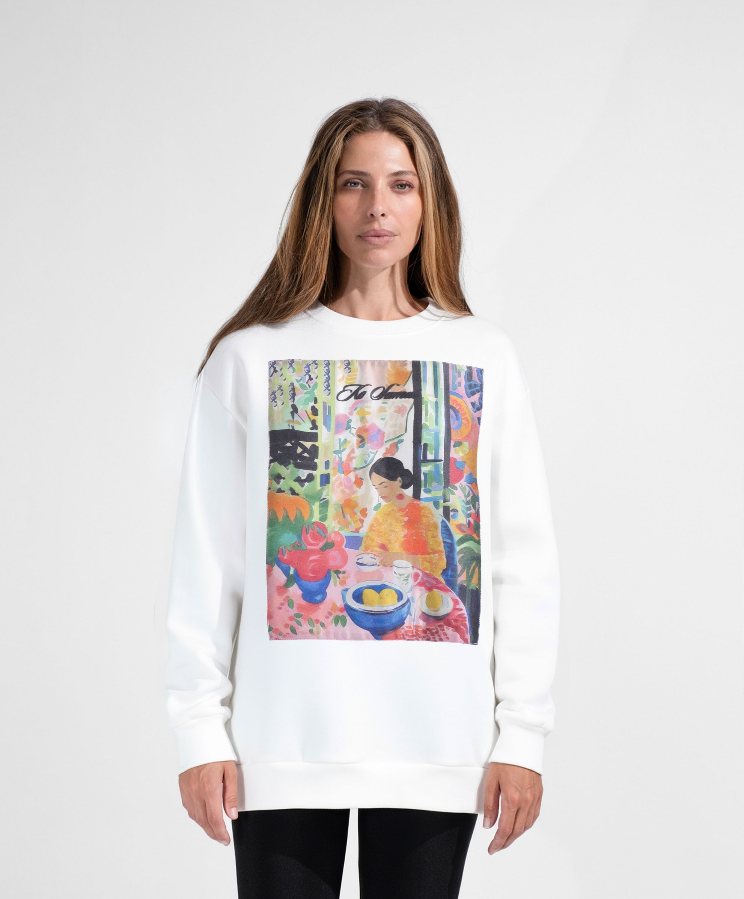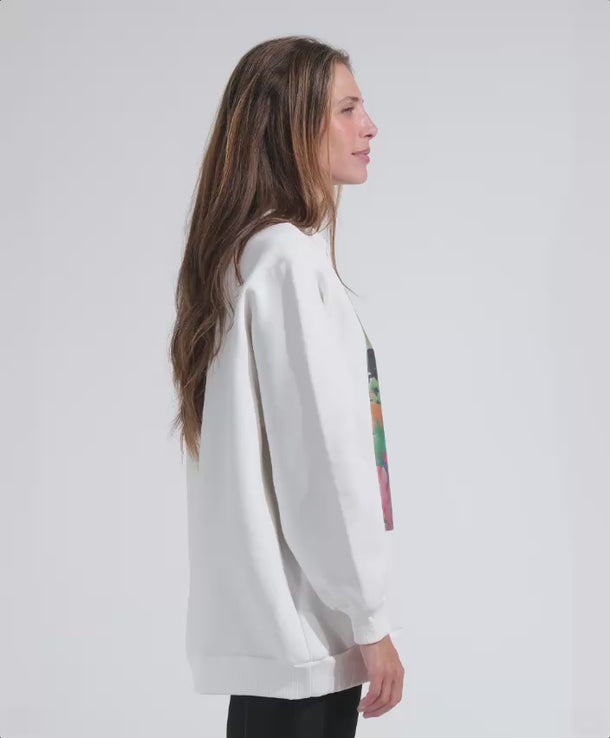 Felpa girocollo donna, vestibilità over, 90% cotone 10% poliestere 300gr, bandiera logo Ko Samui sul fianco.