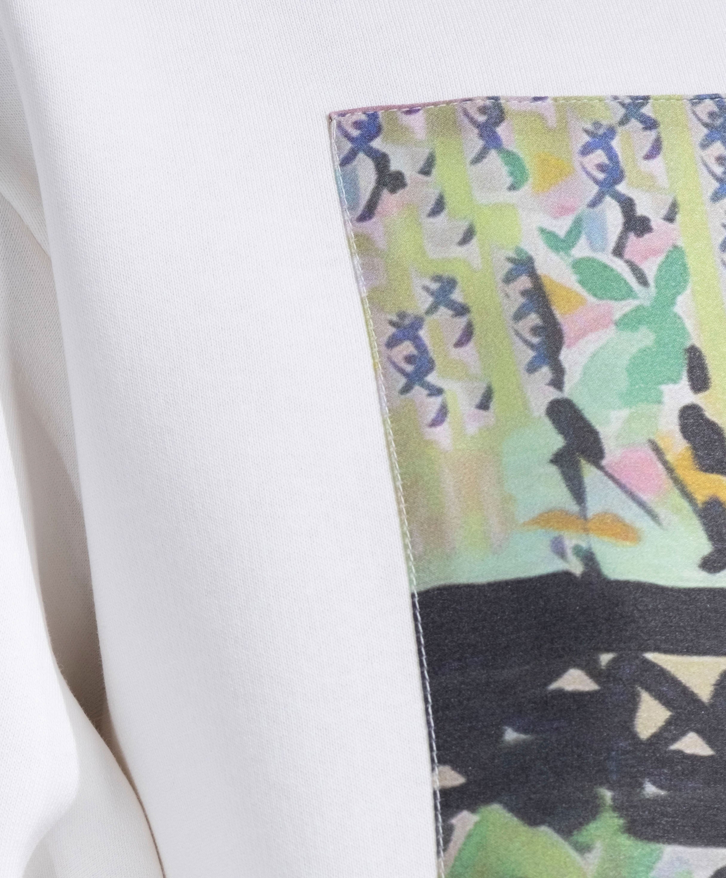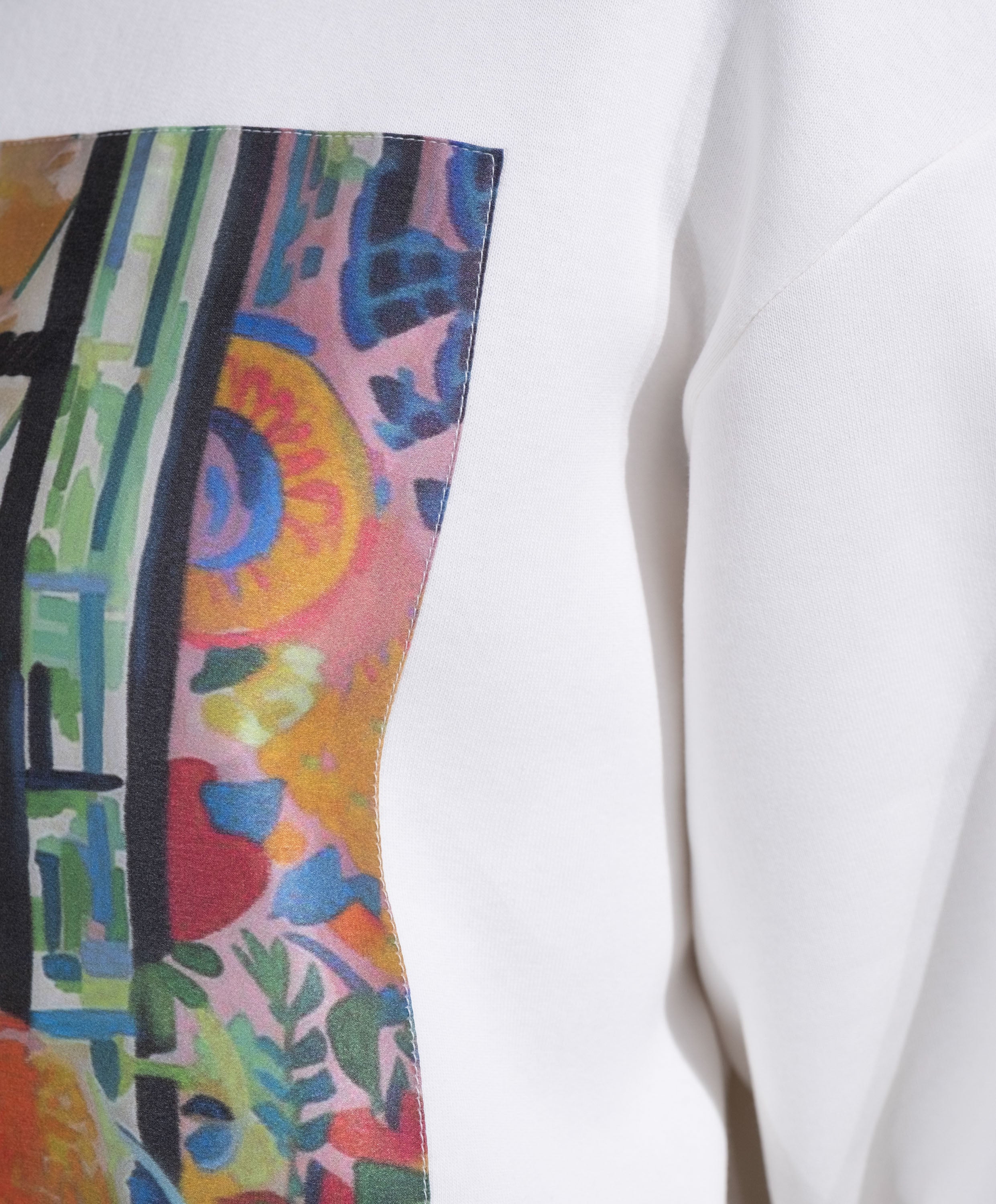 Stampa digitale su seta cucita sul davanti, leggera e traspirante, impercettibile sulla pelle e resistente ai lavaggi.