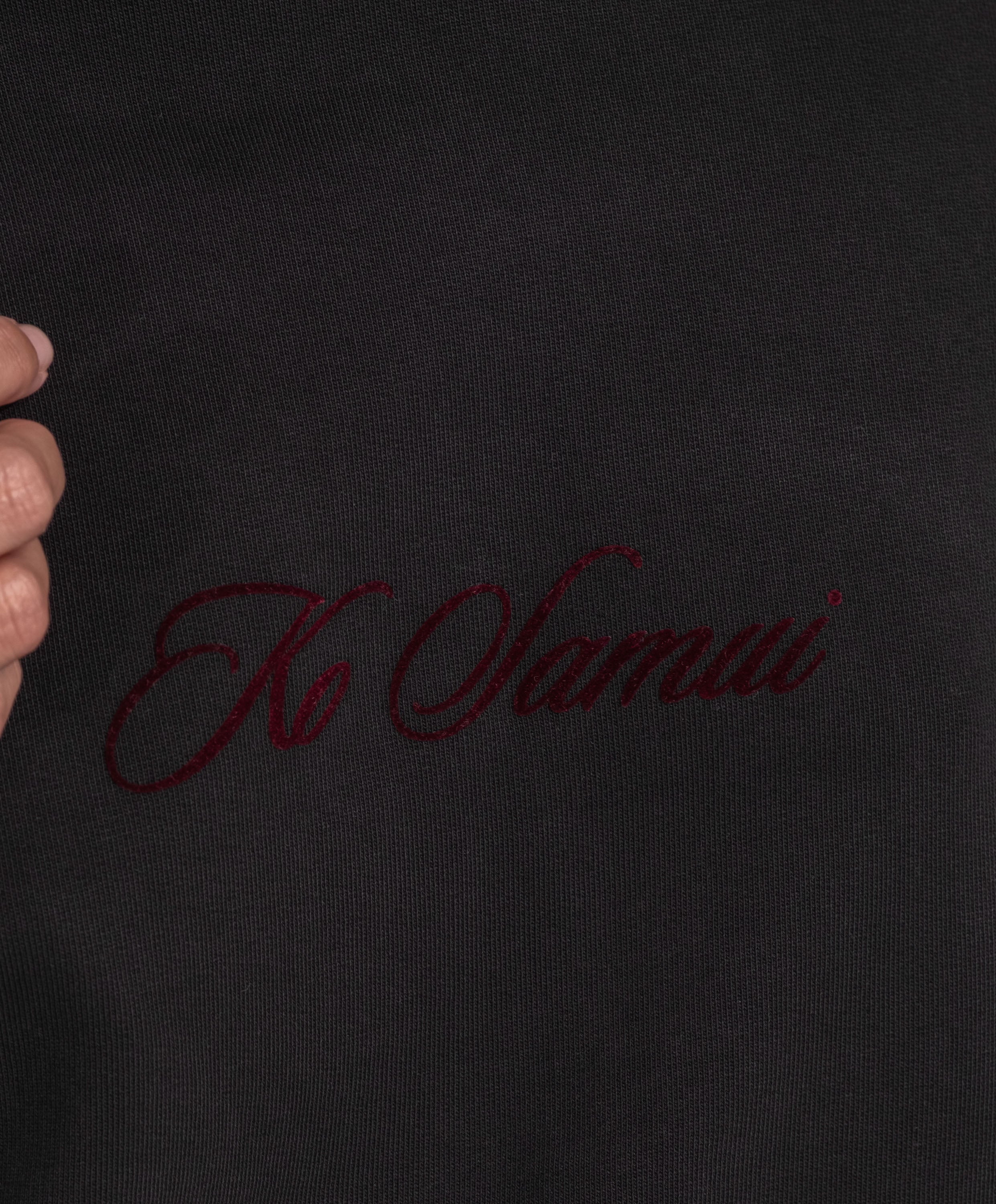 Transfer "KOSAM" in velluto rosso bordeaux termo-applicato davanti, leggera e traspirante, impercettibile sulla pelle e resistente ai lavaggi.
