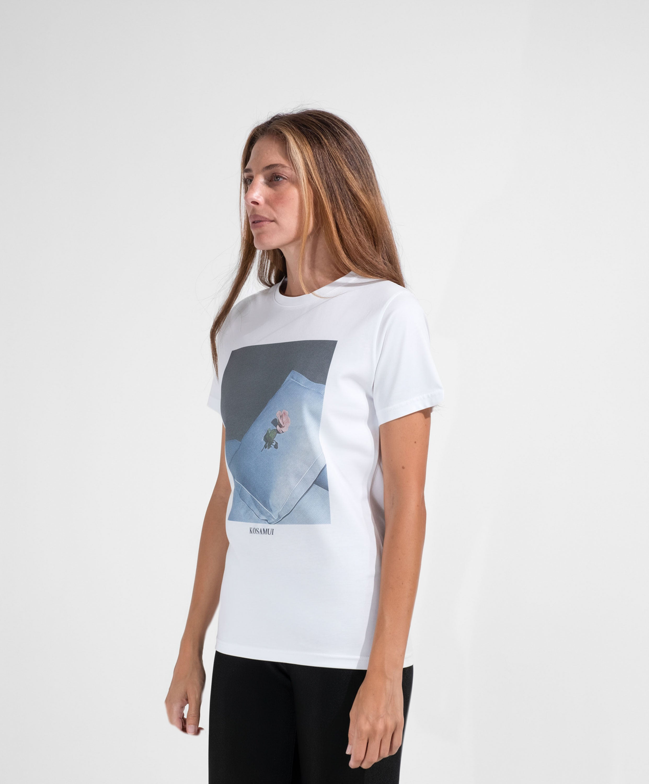 T-shirt donna, vestibilità regolare, collo sottile, 100% cotone ring spun 140gr, etichetta logo Ko Samui sul fianco.