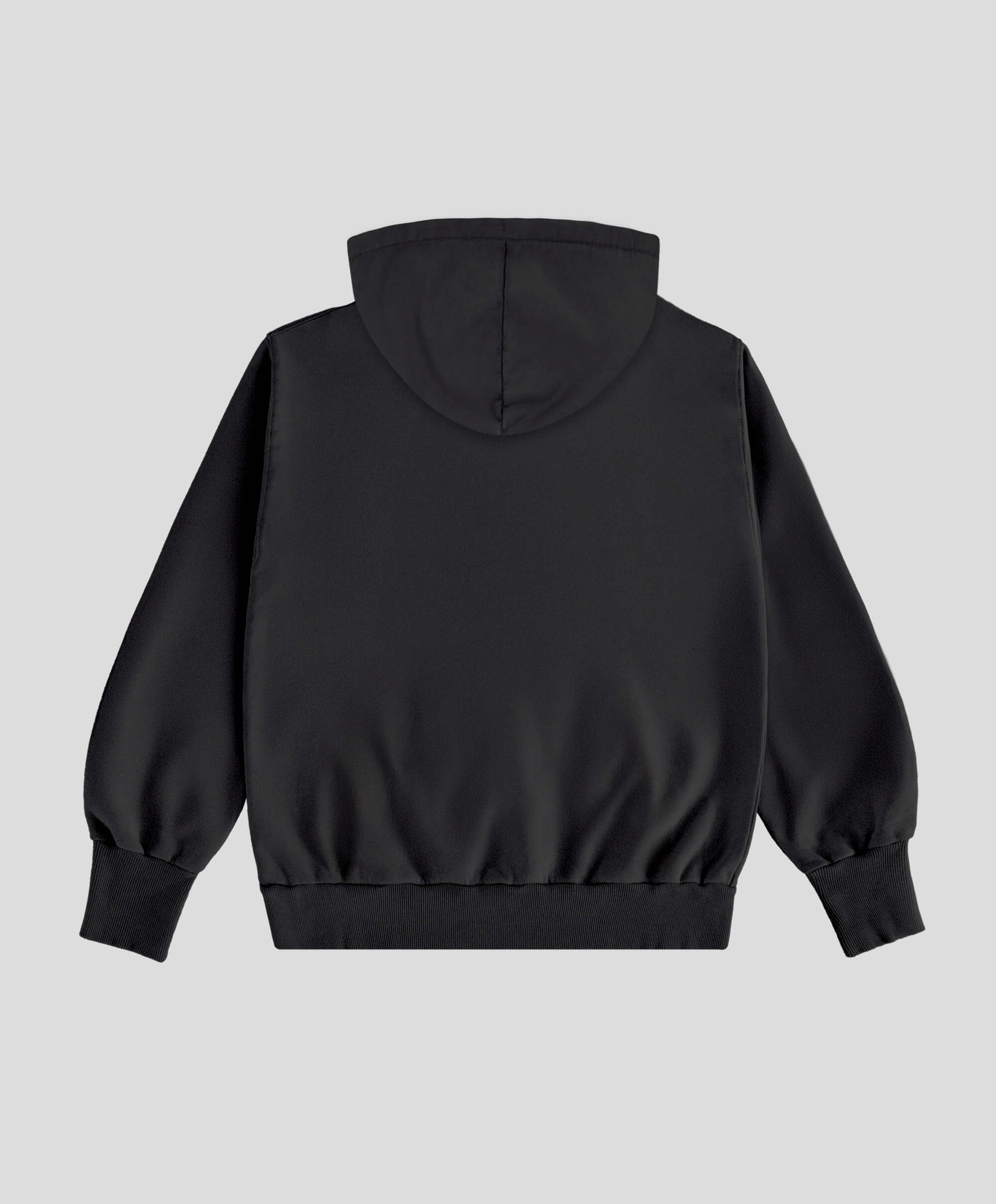 Felpa cappuccio, tinto in capo, vestibilità over, polsini dotati di passapollice, 100% cotone French Terry 300 grammi. Peso medio consigliata per tutte le stagioni.