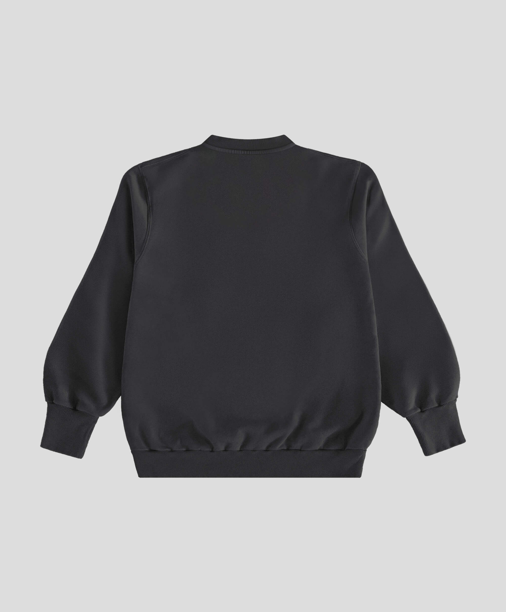 Felpa girocollo, tinto in capo, vestibilità over, polsini dotati di passapollice, 100% cotone French Terry 300 grammi. Peso medio consigliata per tutte le stagioni.