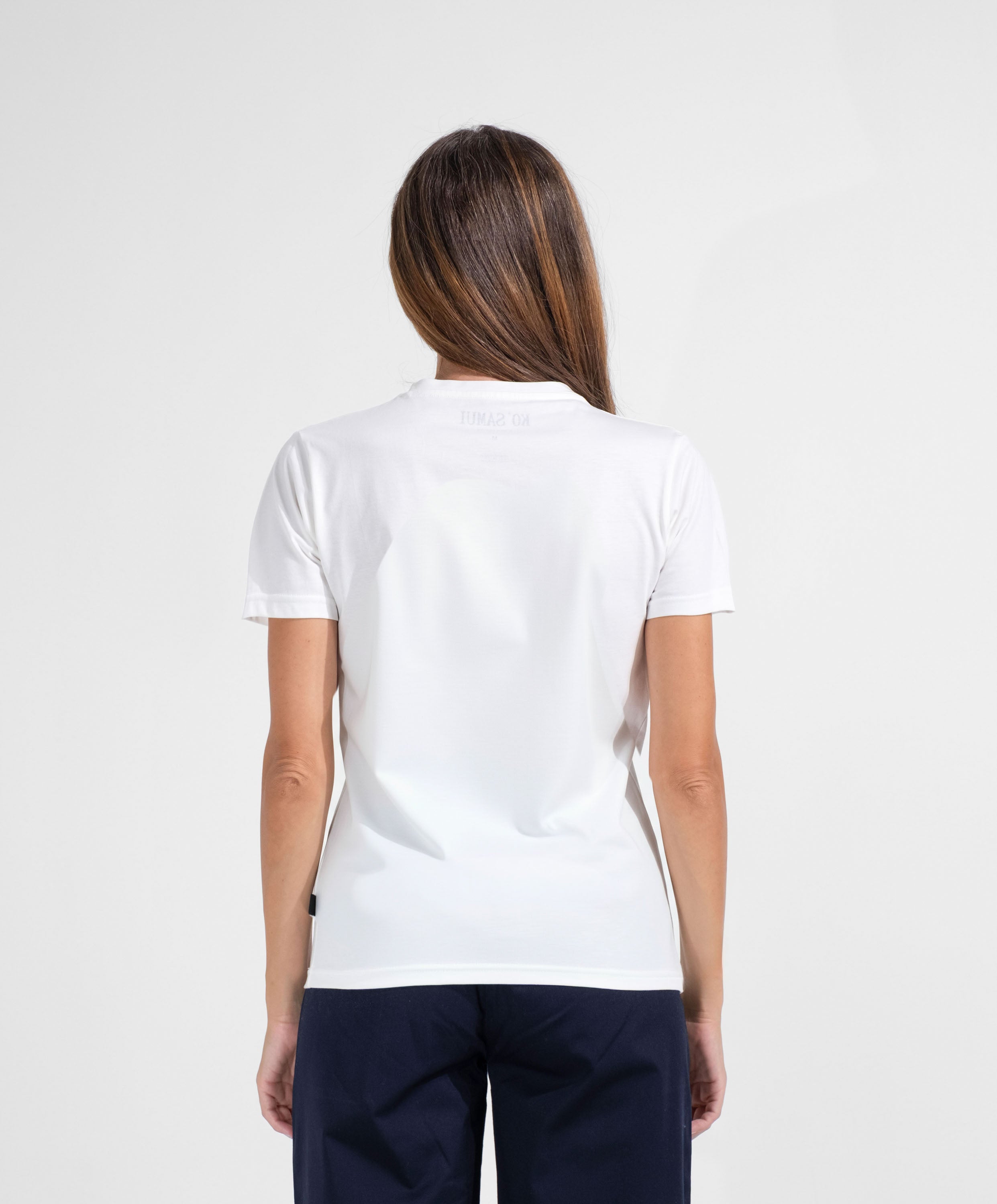 T-shirt donna, vestibilità regolare, collo sottile, 100% cotone ring spun 140gr, etichetta logo Ko Samui sul fianco.
