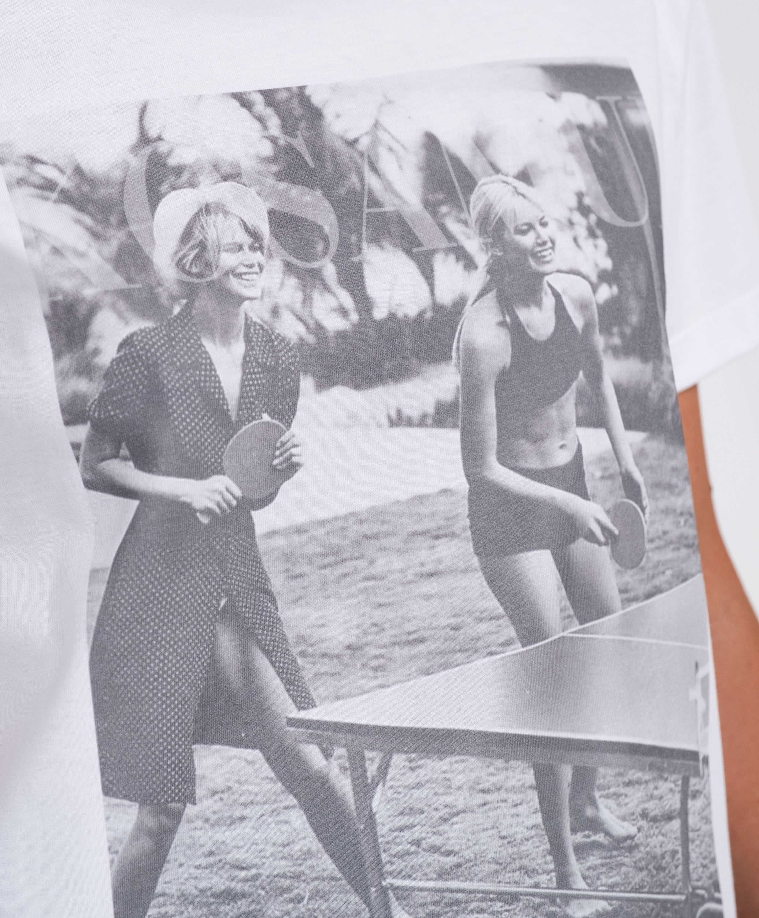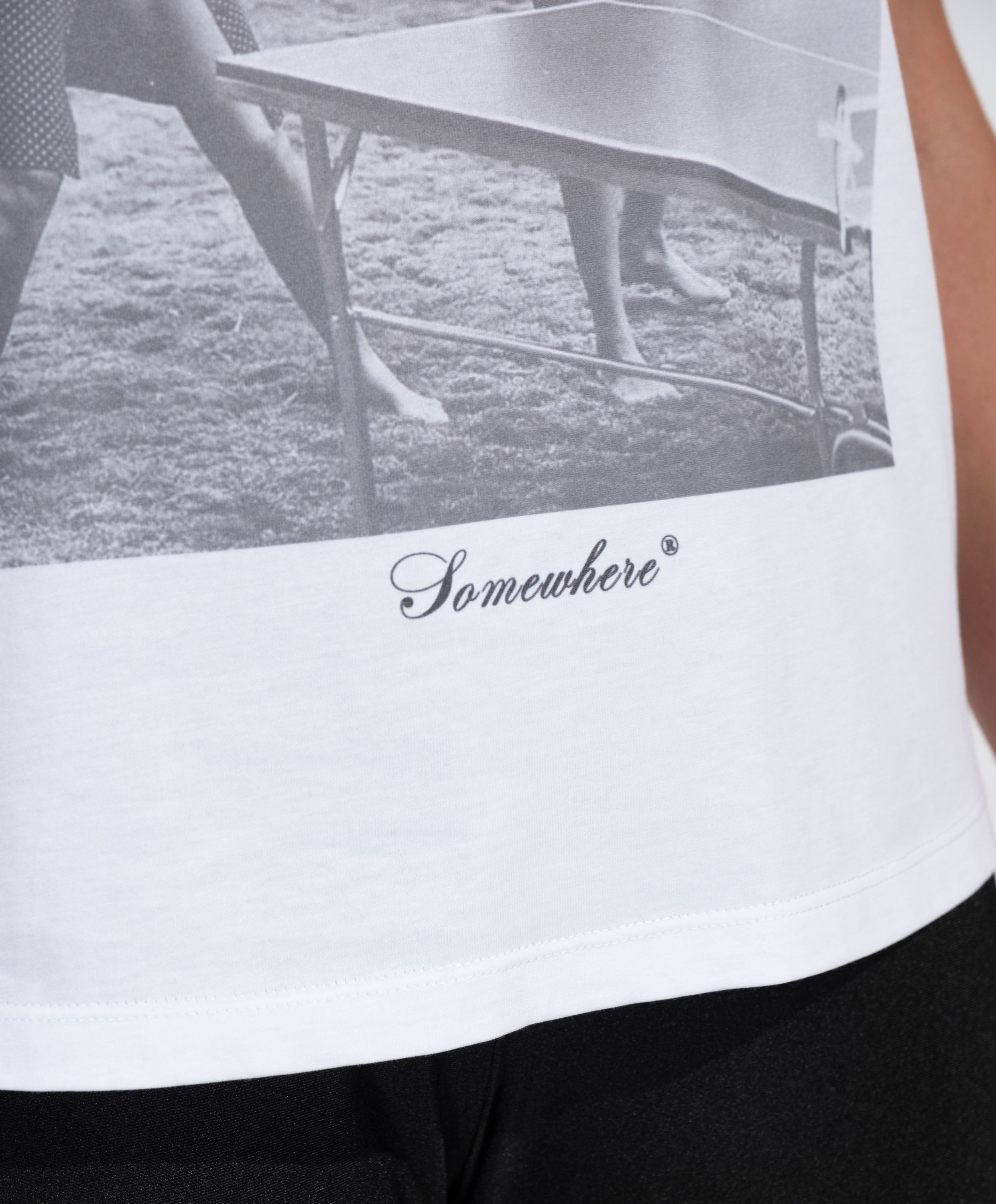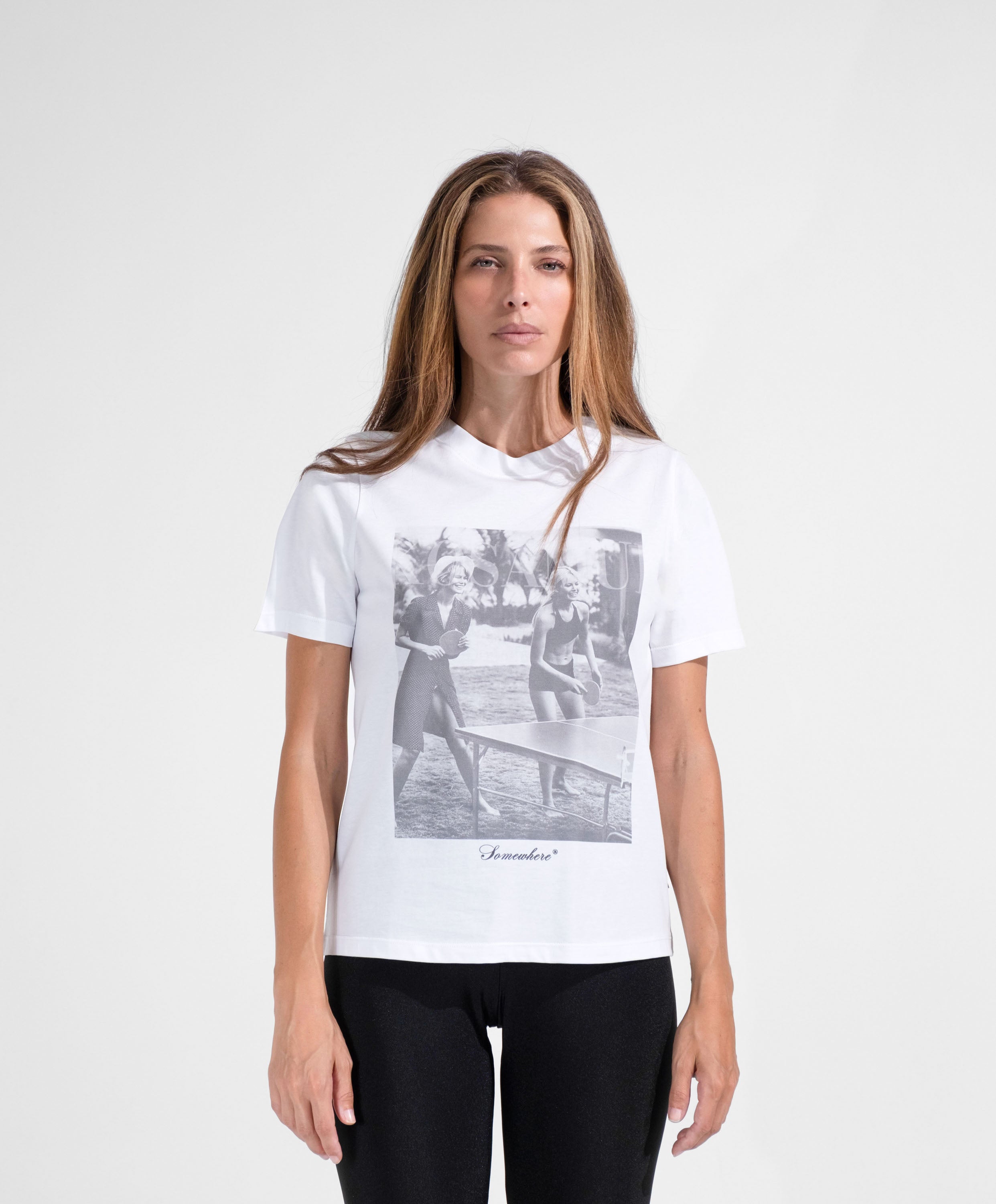 Stampa digitale bianca e nera ad alta definizione sul davanti, leggera e traspirante, impercettibile sulla pelle e resistente ai lavaggi.