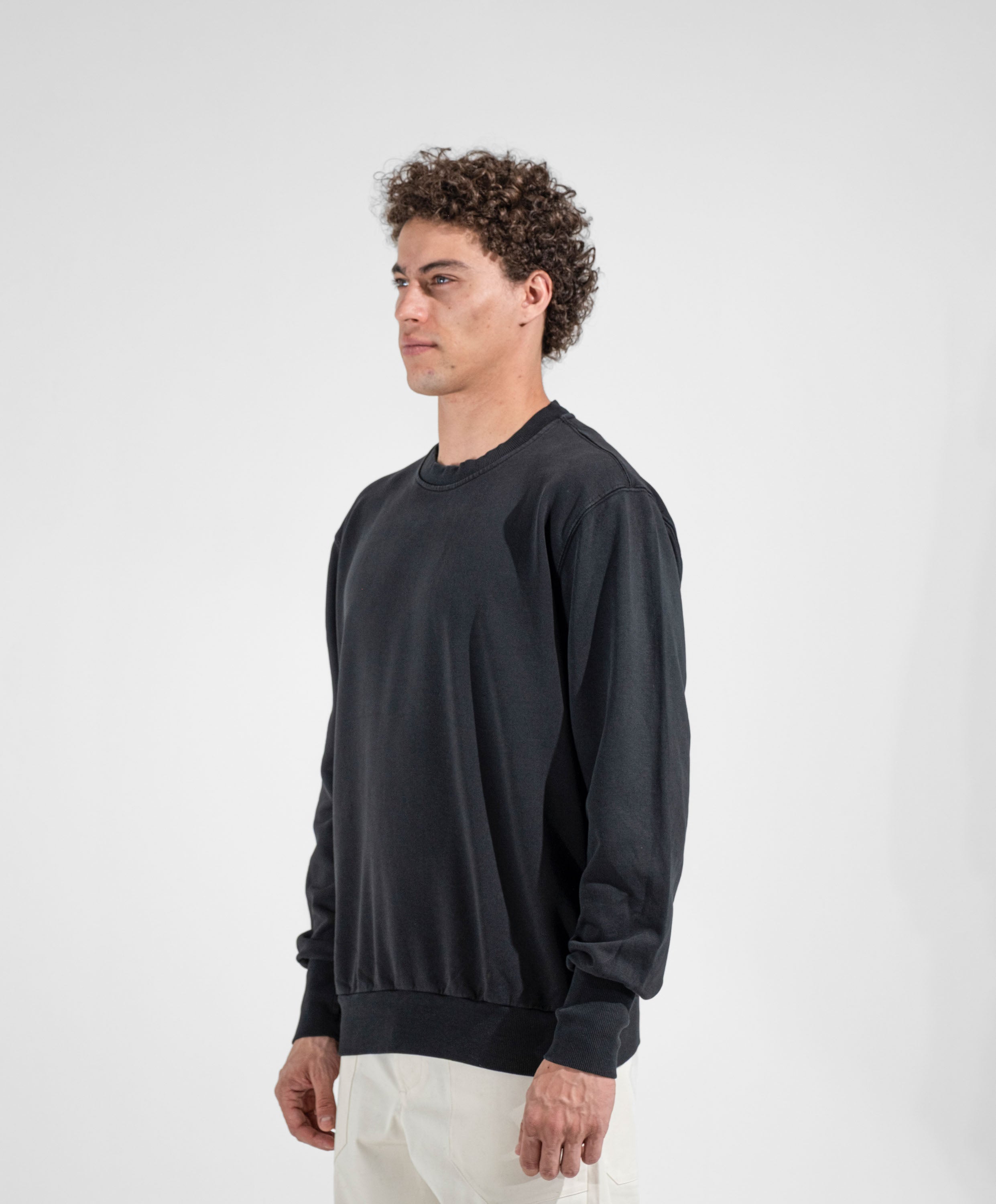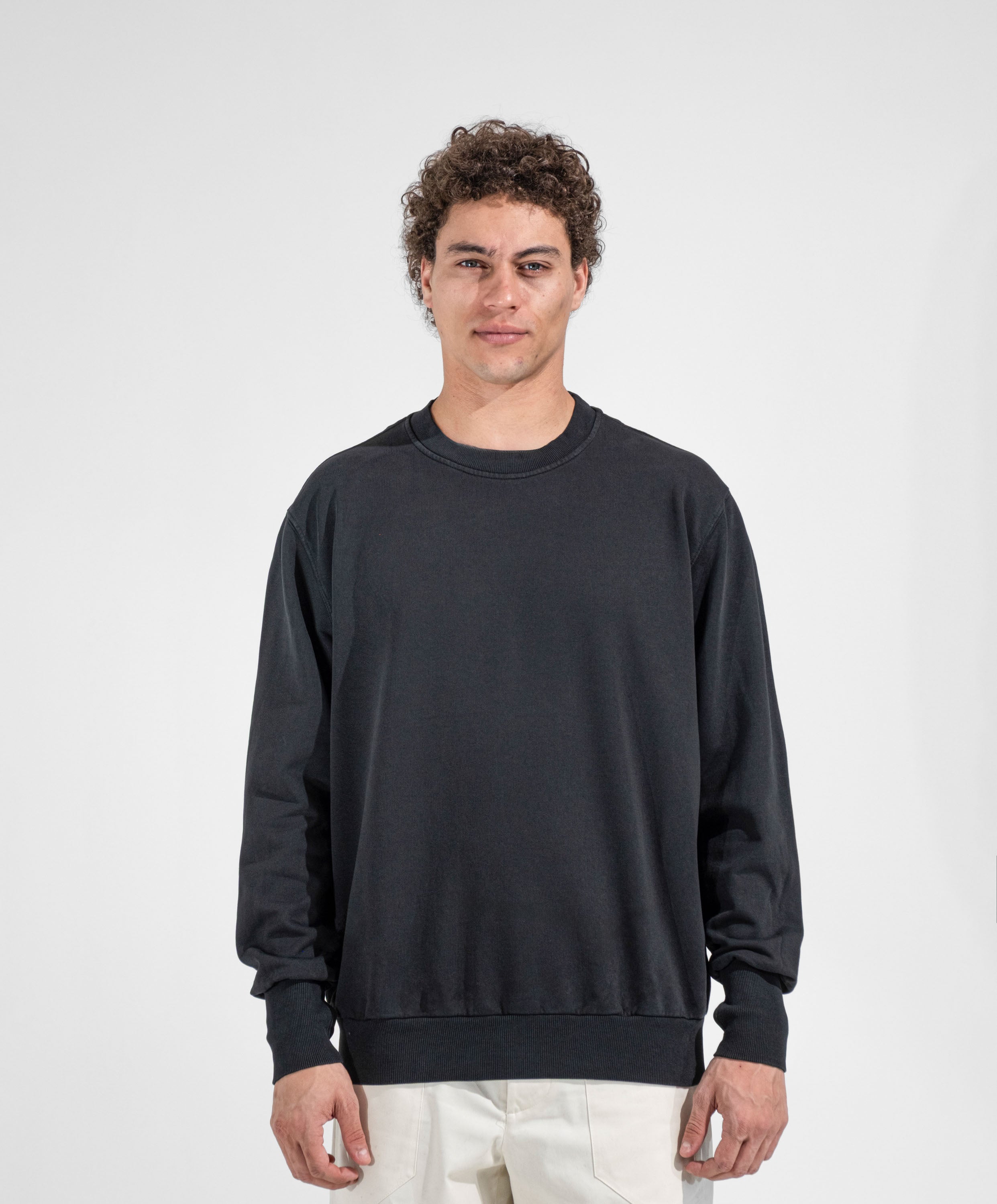 Crew neck sweatshirt, garment-dyed, oversized fit, cuffs with thumb loops, 100% 300-gram French Terry cotton. Medium weight, recommended for all seasons.