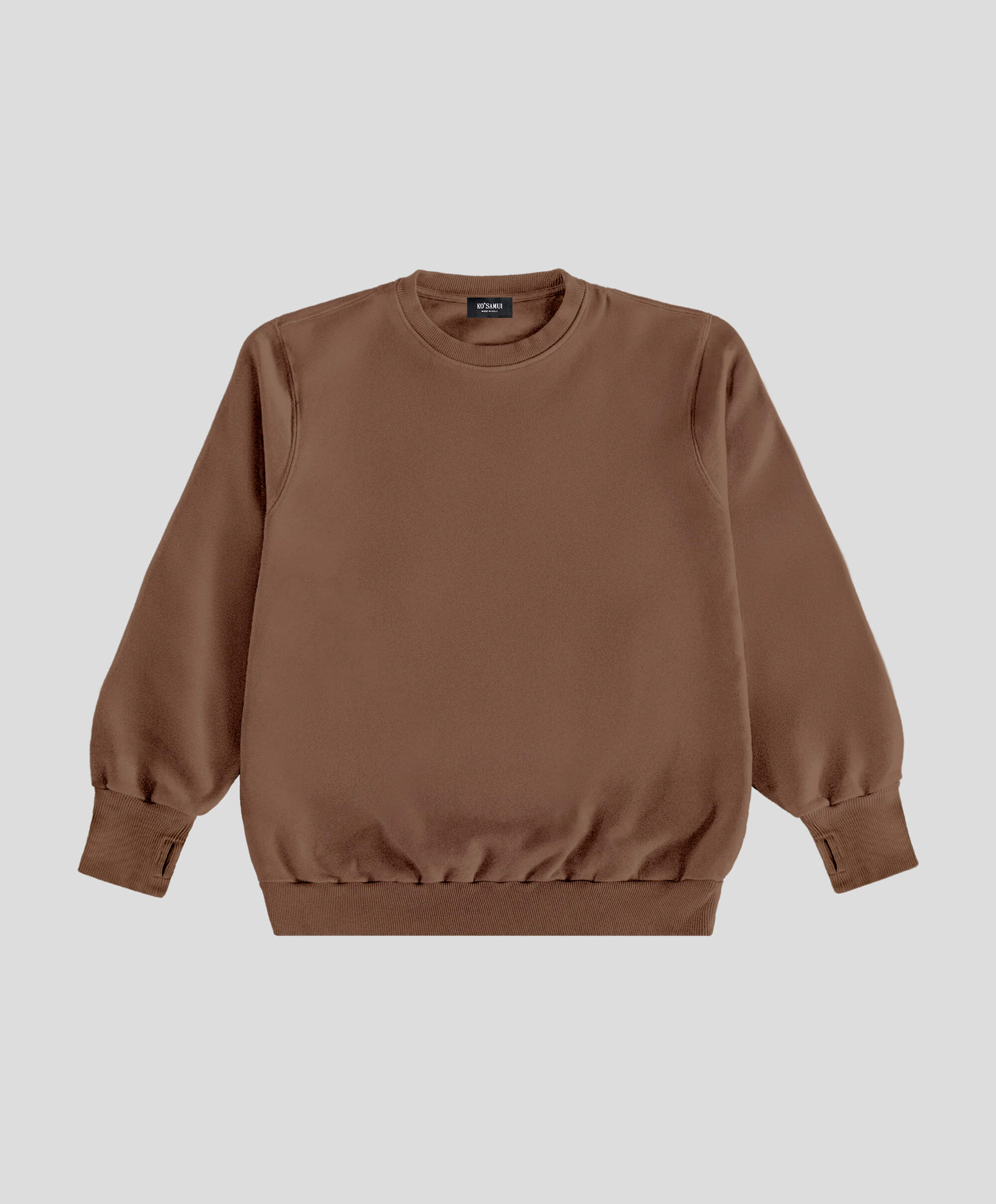 Crew neck sweatshirt, garment-dyed, oversized fit, cuffs with thumb loops, 100% 300-gram French Terry cotton. Medium weight, recommended for all seasons.