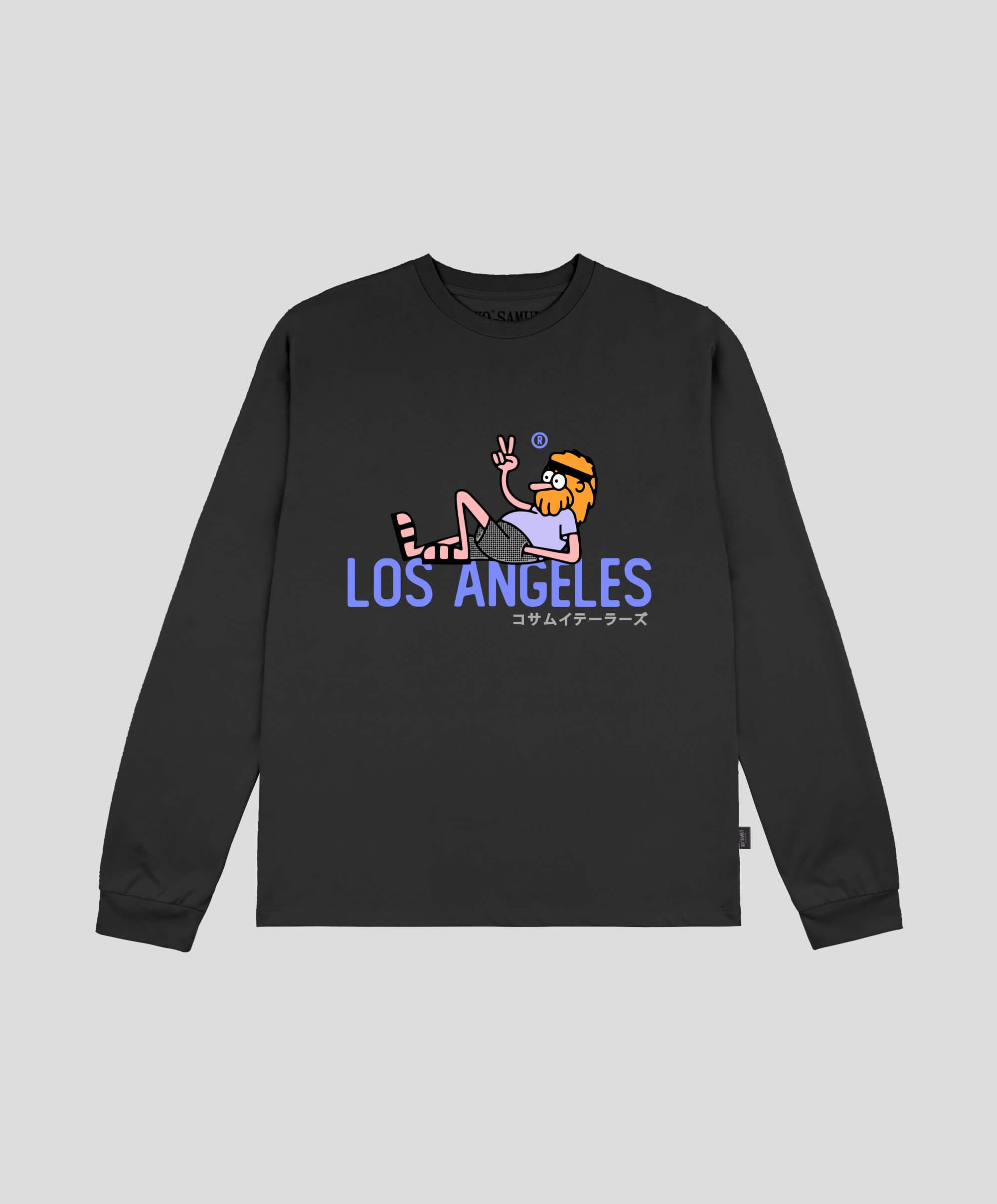 T-shirt à manches longues pour homme, coupe classique, col rond côtelé, 100 % coton filé à l'anneau 140 g, Étiquette avec le logo Ko Samui sur le côté.