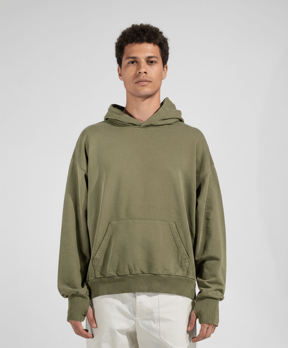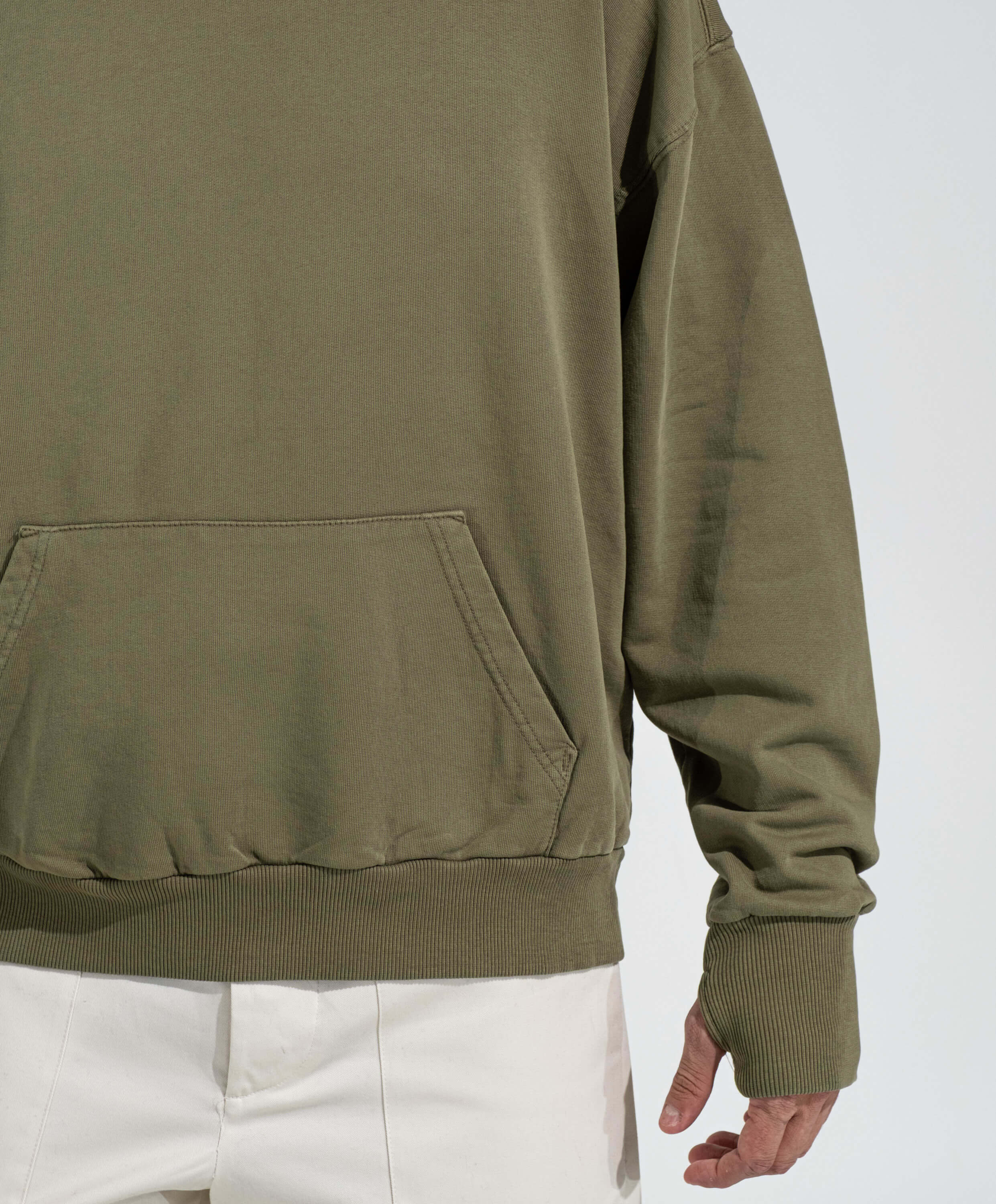 Felpa cappuccio, tinto in capo, vestibilità over, polsini dotati di passapollice, 100% cotone French Terry 300 grammi, etichetta logo Ko samui sul fianco. Peso medio consigliato per tutte le stagioni.