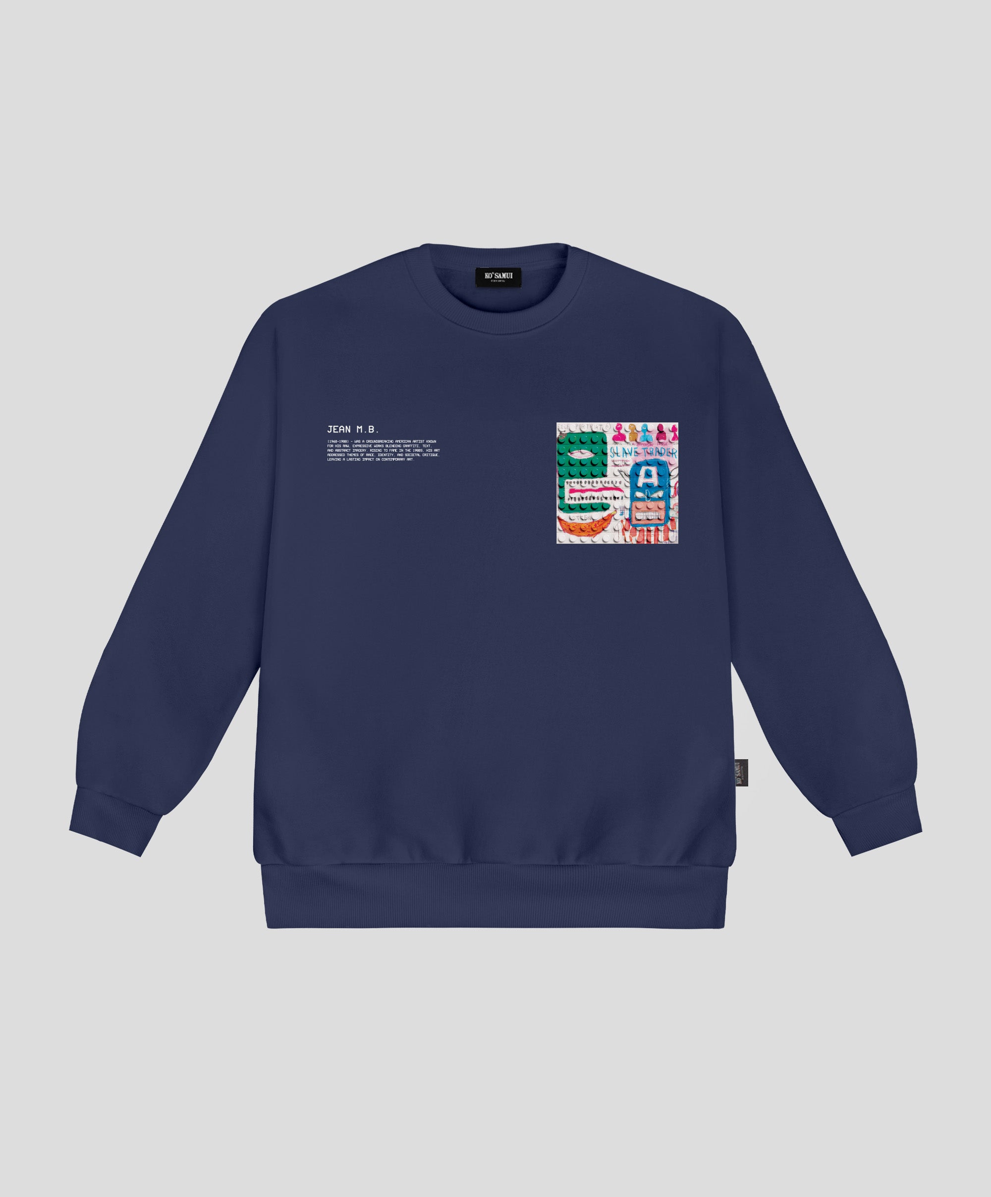 Stampa quadrata sublimatica, su tessuto scuba, cucita sul lato sinistro, leggera e traspirante, impercettibile sulla pelle e resistente ai lavaggi. Descrizione artista sul lato destro.