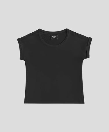 T-shirt donna, vestibilità over, collo sottile, 90% viscosa e 10% elastan , etichetta logo Ko Samui sul fianco.
